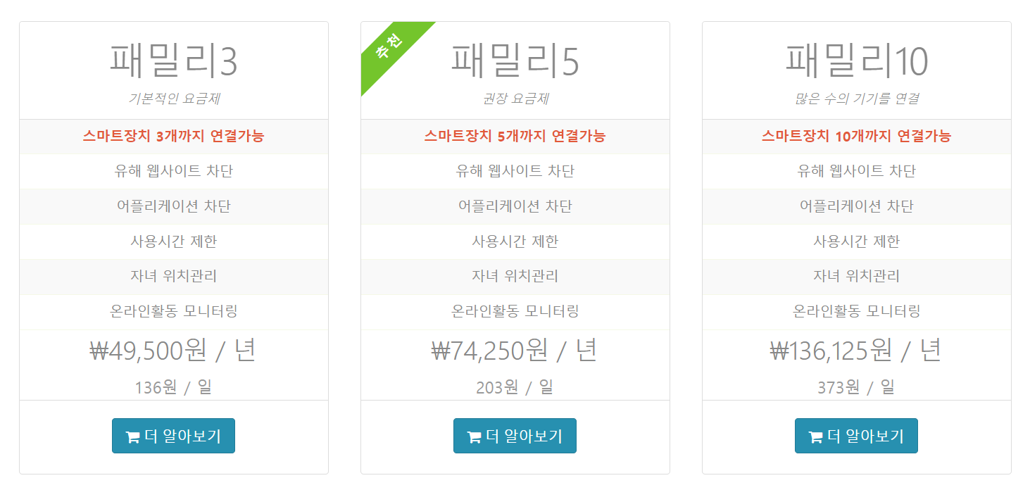 처음 가입하면 한달은 무료로 사용할 수 있으며 스마트장치 개수에 따라 년 유지비용이 다르게 발생한다.