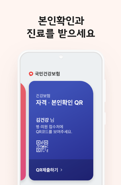 설치가 완료 되면 병의원 접수처에 모바일 건강보험증이나 본인확인 QR, 바코드를 보여주면 본인 확인이 가능하다.