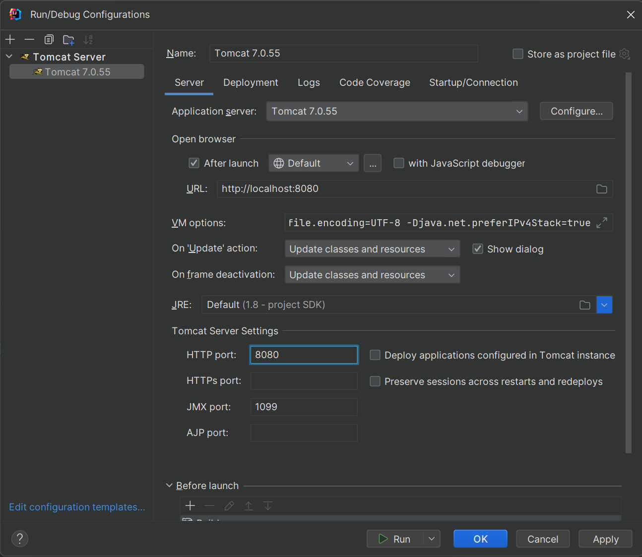 2. IPv4 설정 : -Djava.net.preferIPv4Stack=true