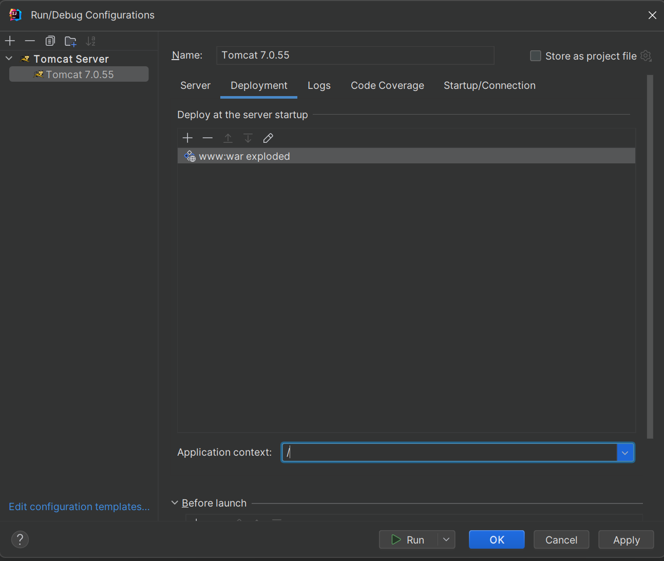 Application context를 /www_war_exploded에서 / 로 수정한다.
