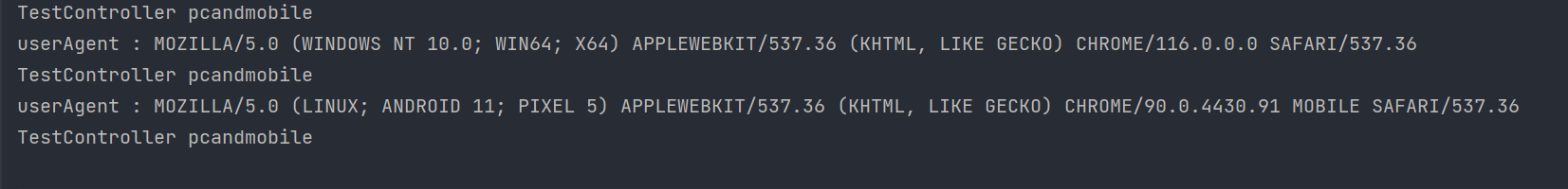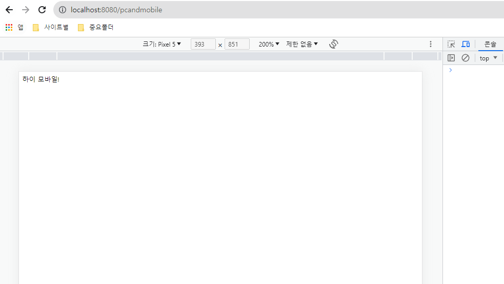 하지만 모바일 환경일 경우에는 views/mobile 폴더 아래에 있는 pcandmobile.jsp로 뷰페이지를 반환하게 된다.