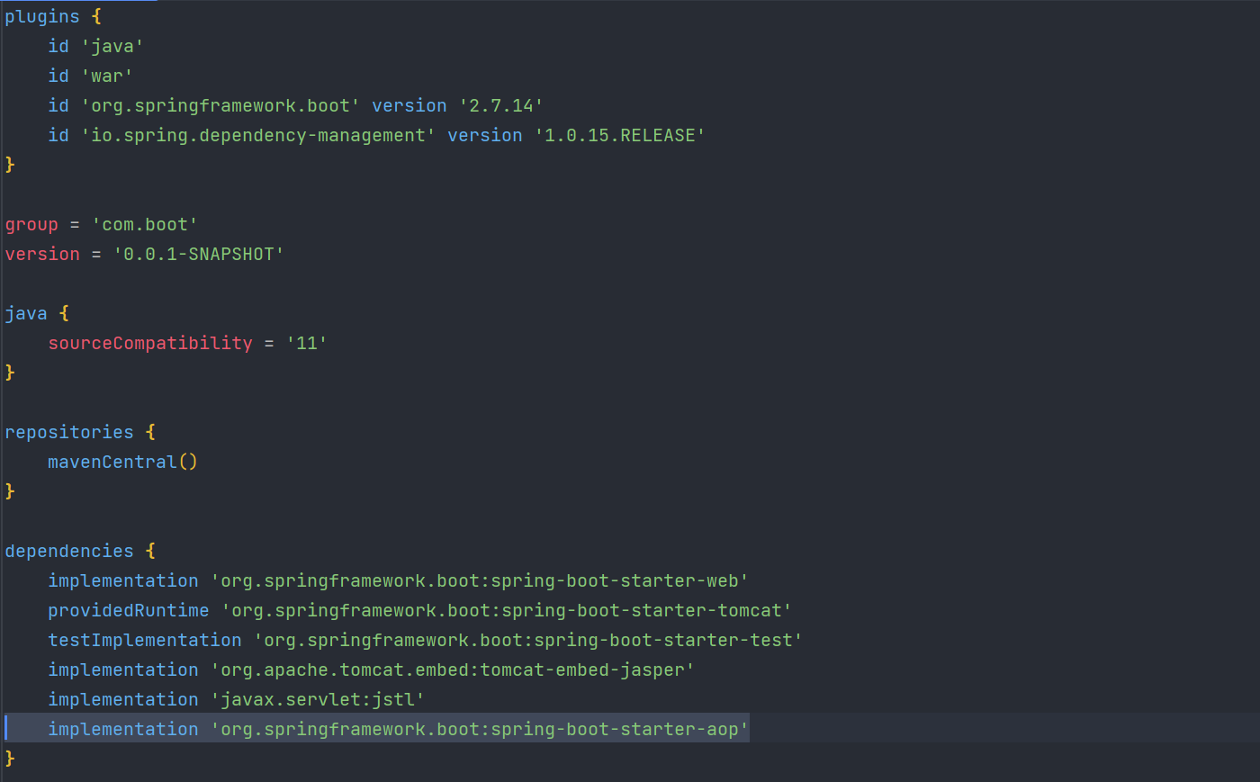 aop 사용을 위해 build.gradle 파일에 aop 라이브러리를 추가해 준다.