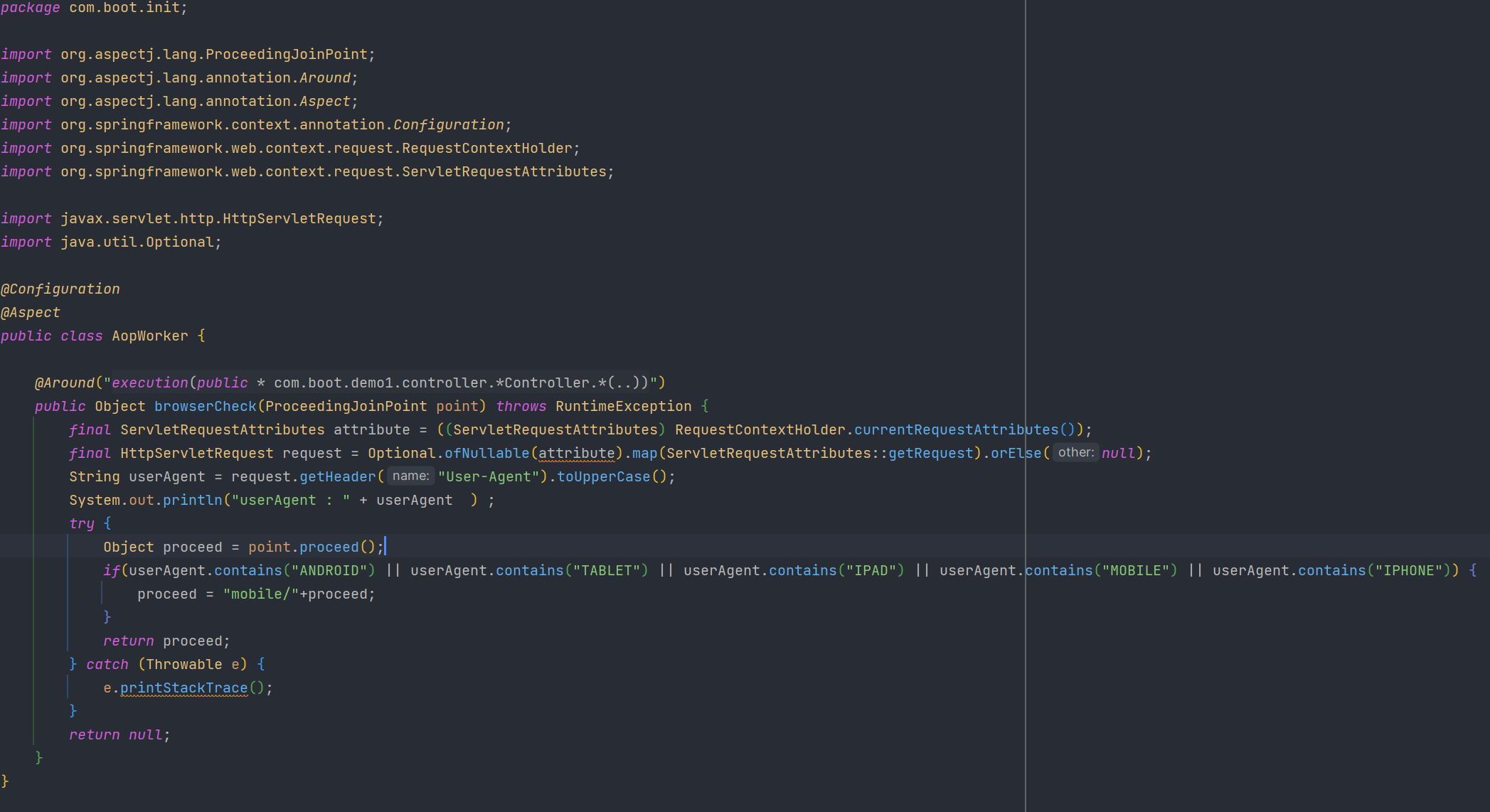 하지만 이 모듈에는 생각보다 많은 웹 취약점이 등록되어 있었고 고민을 하던끝에 이 방식이 아닌 Aop방식으로 모바일 분기를 해보기로 했다.