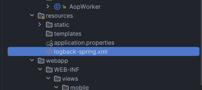 로그설정을 더 명확히 하고 싶다면 resources 폴더아래에 logback-spring.xml 파일을 생성하면 된다.