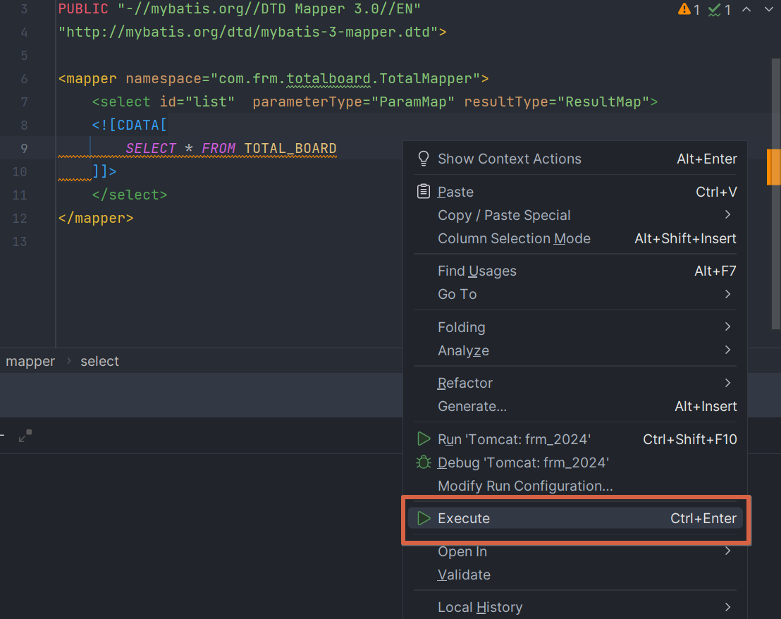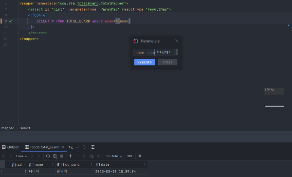 mapper.xml 파일을 하나만들고 실행해 볼 검색쿼리 하나를 만든다.