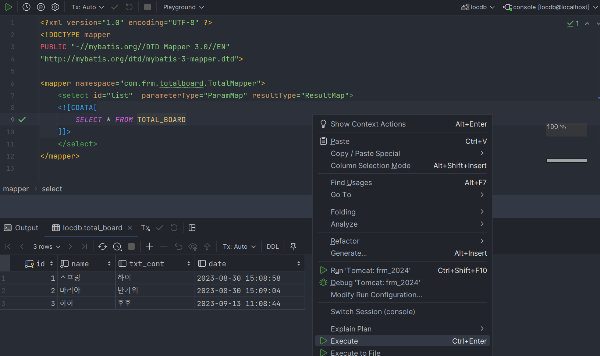 쿼리에 마우스 커서를 대고 마우스 우측버튼을 누르면 Execute(실행)를 해볼 수 있다.