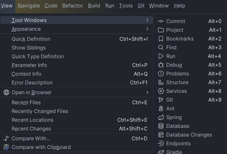 활성화시키는 방법은 [View]-[Tool Windows]- [Database] 메뉴를 클릭하자.