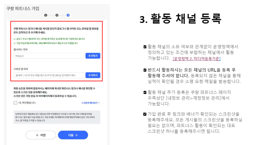 쿠팡 파트너스 최종승인 과정