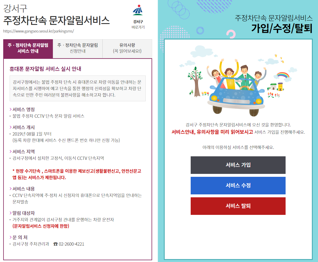 각 지역구에서는 주정차를 단속할 때 사전 문자 알림 서비스를 실시하고 있다.