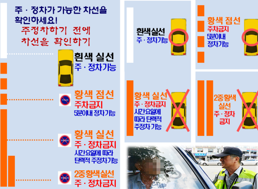 주정차를 할때에는 주정차가 가능한 차선인지를 꼭 확인하는 습관이 필요하다.