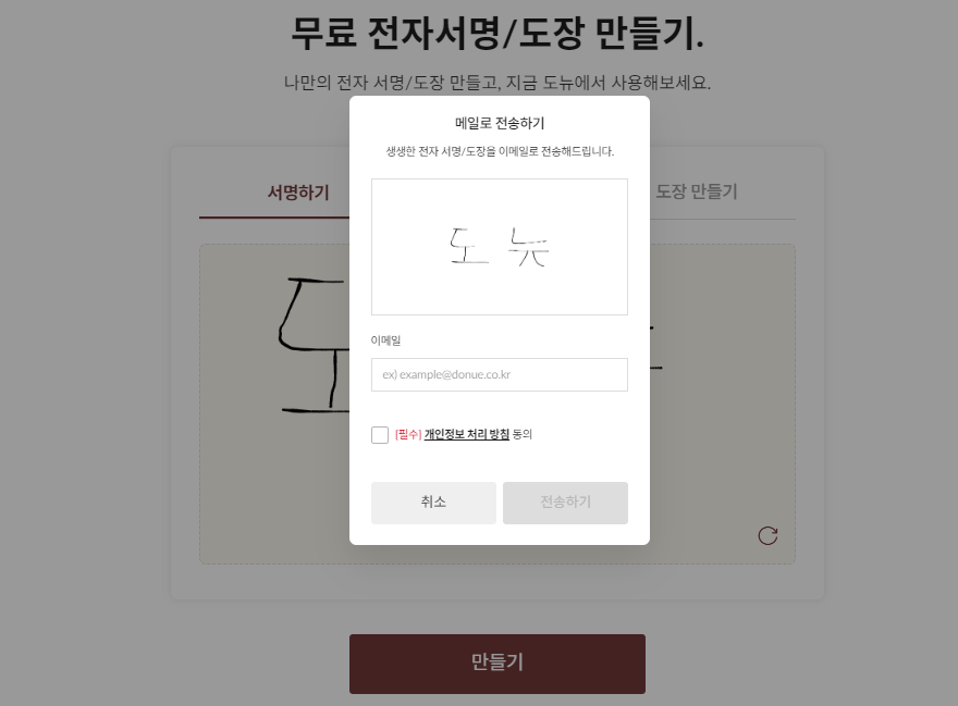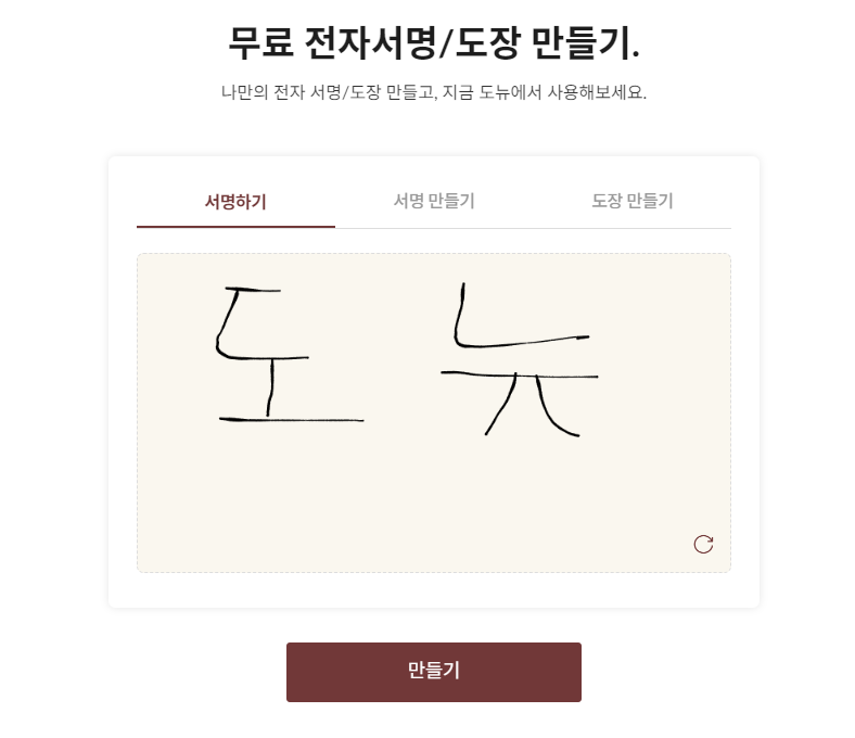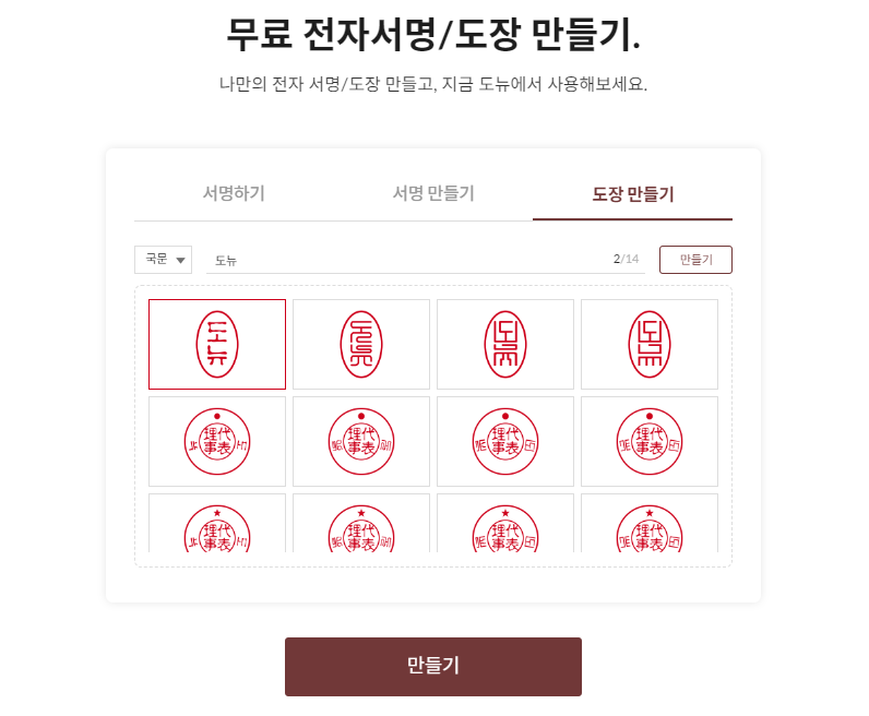 전자 서명 외에도 도뉴사이트에서는 도장 만드는 기능도 제공된다.