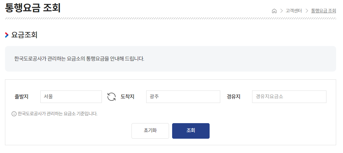 고속도로 구간별 통행 요금 조회