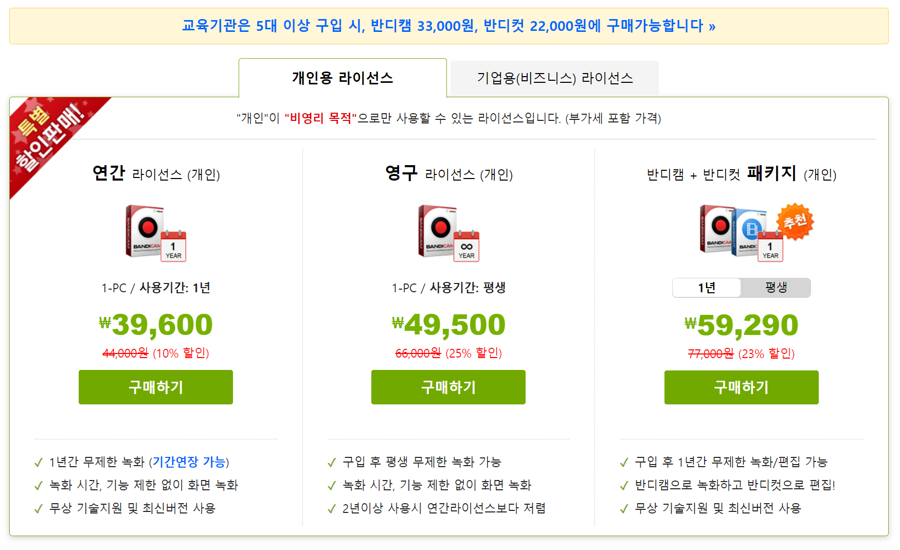 평생 기능 제한 없이 무제한 녹화가 가능하기에 화면 녹화를 자주 하는 사람이라면 투자할만한 값어치는 충분하다.