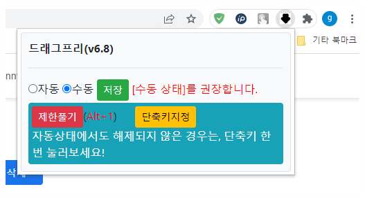드래그프리는 설치 시 기본 설정이 수동상태로 되어있다.