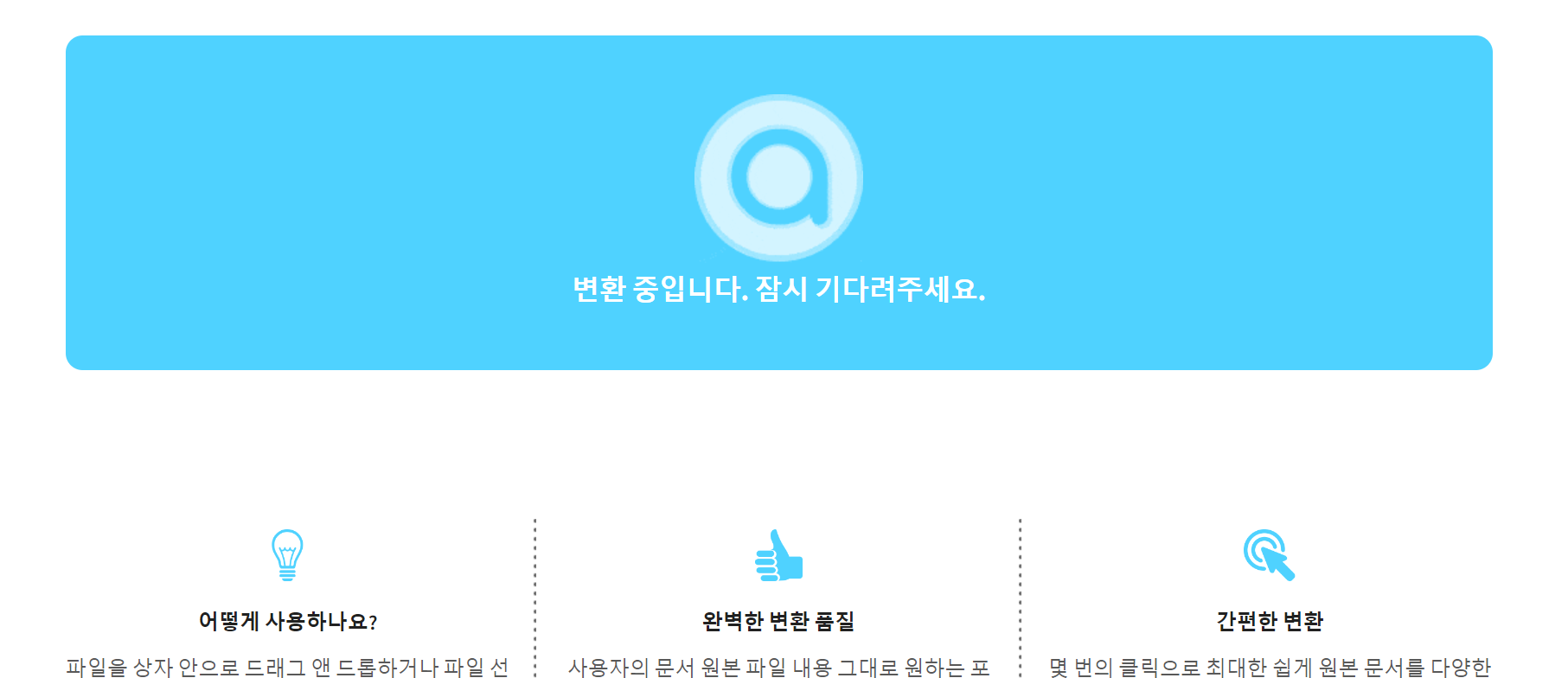 파일변환이 시작되면 변환 중입니다 라는 메시지와 함께 약간의 변환시간이 소요된다.