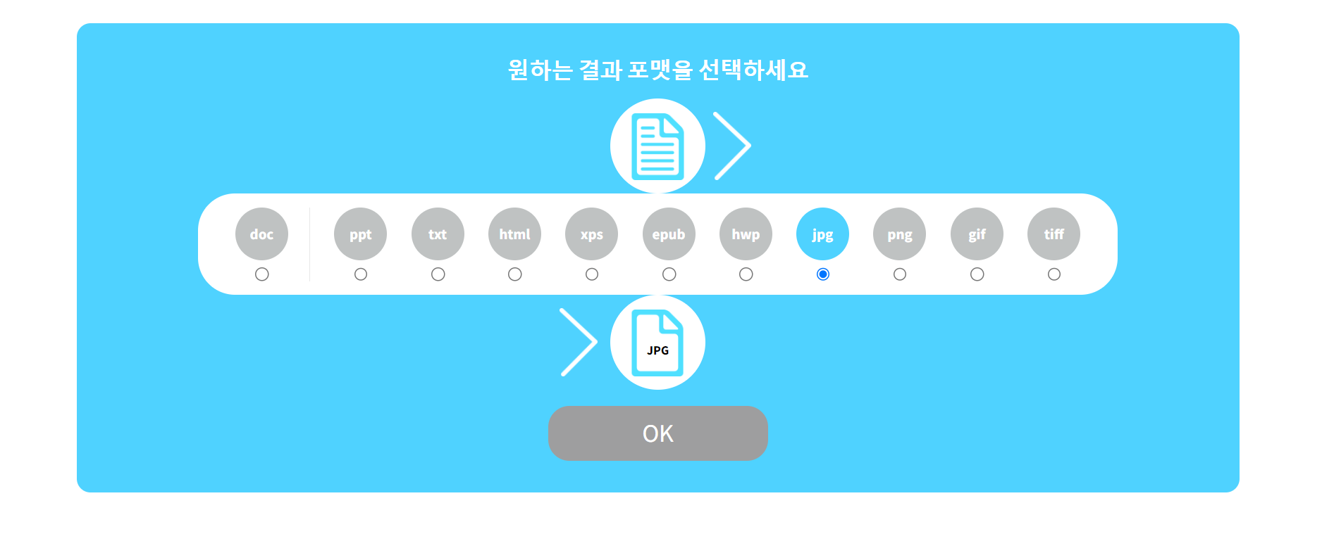 파일이 업로드되면 원하는 결과 포맷을 선택하는 페이지로 이동이 된다.
