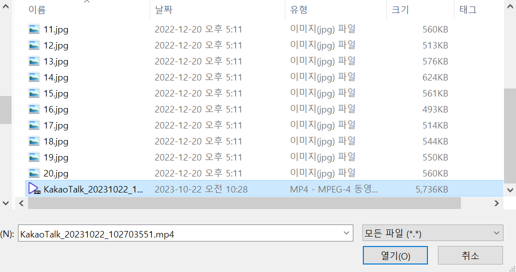변환할 동영상 파일을 선택한다.(1개만 가능)
