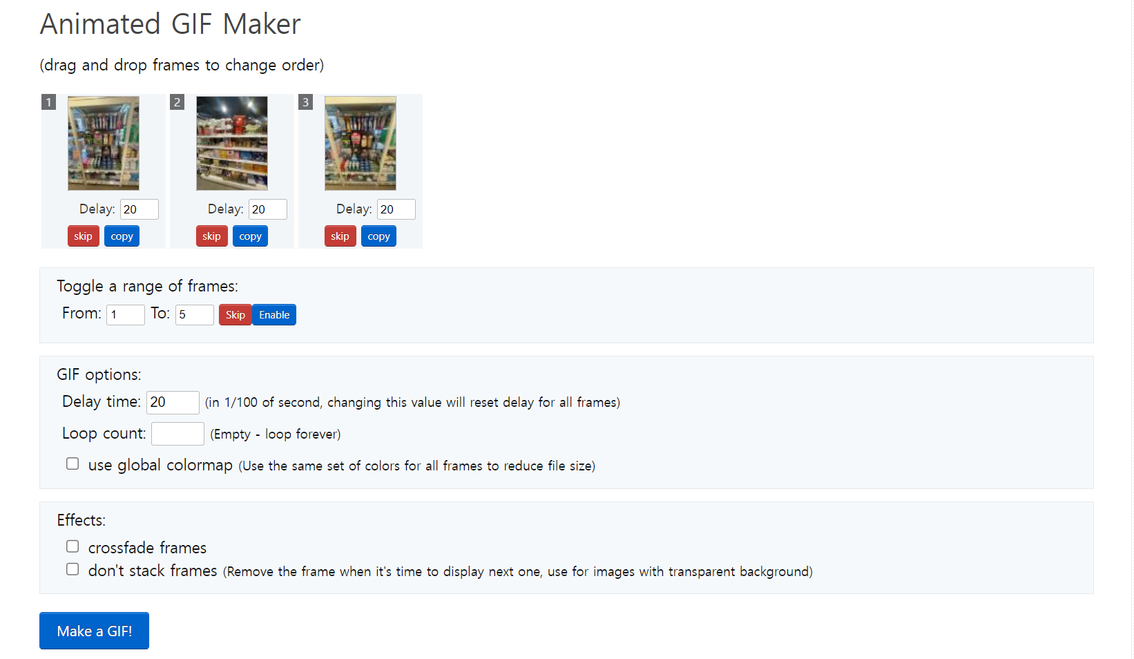 만들어진 gif 파일은 제공되는 툴로 수정이 가능하다.