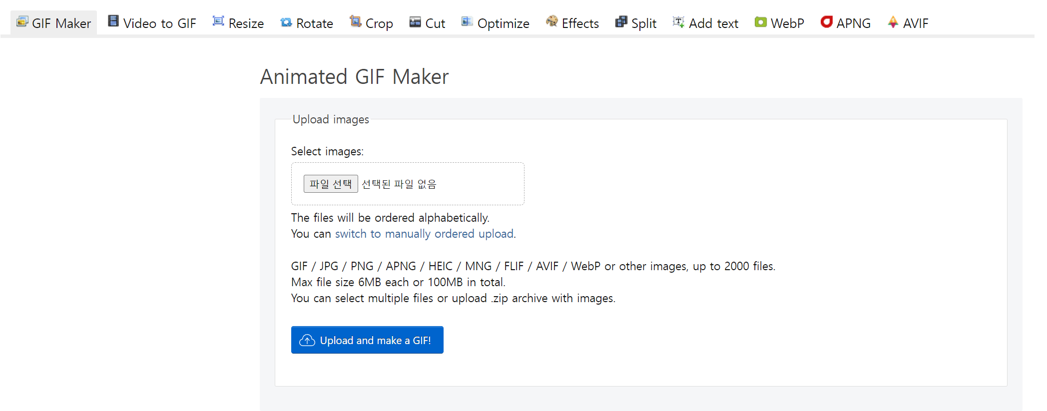 파일 선택이 완료되면 Upload and make GIF! 버튼을 눌러준다.