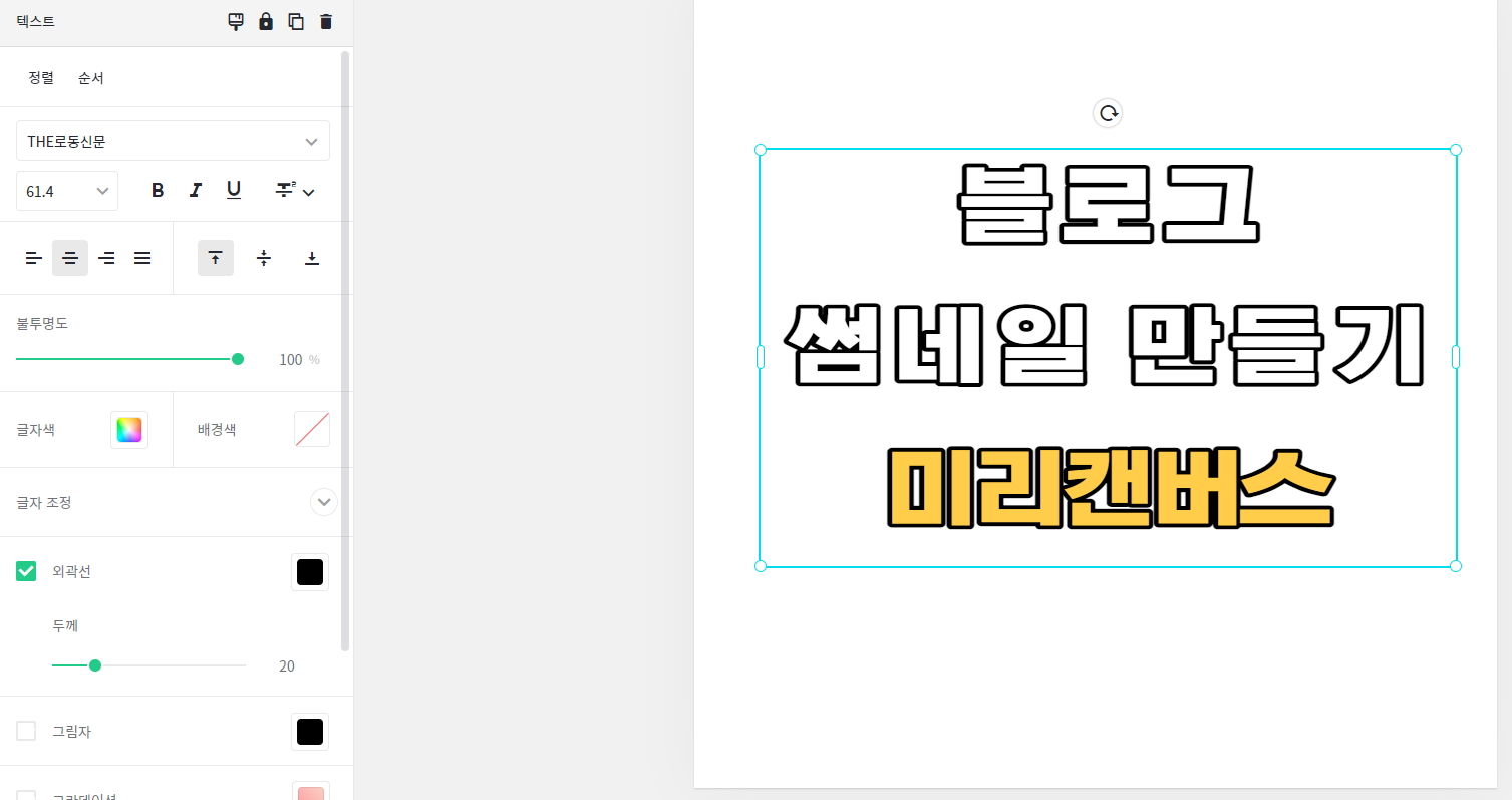마지막으로 외곽선 색상과 두께를 조절해주면 썸네일 만들기는 끝이 난다.