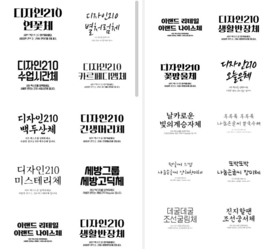 특별히 원하는 폰트나 크기가 없다면 미리 조합되어 있는 텍스트를 선택해 사용해도 된다.