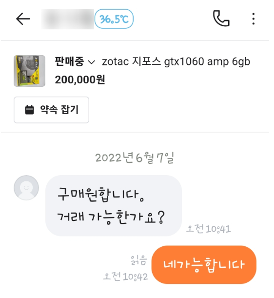 구매자와 제품에 대해 이야기를 나눈 후 만날 장소와 가격을 협의하고 약속한 날짜에 거래를 하면 된다.