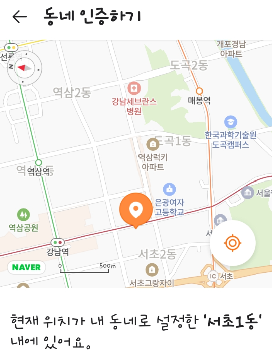 앱을 다운받은후 가장 먼저 해야 할 건 본인이 사는 동네 인증하기이다.