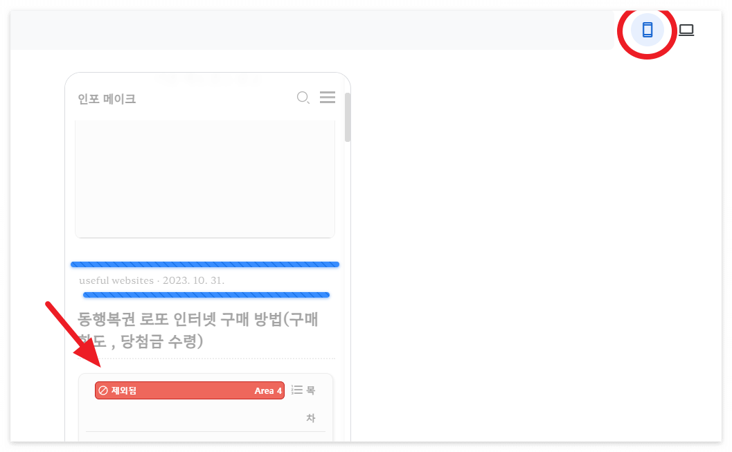 모바일 광고제외를 하려면 우측 상단에 핸드폰 이모티콘을 클릭한다.