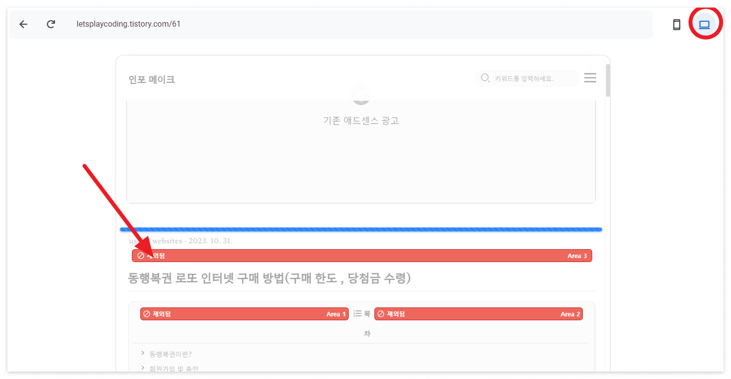 이런 경우에는 광고영역제외 기능을 이용해 그 영역에서는 광고가 노출되지 않게 설정을 해야 한다.