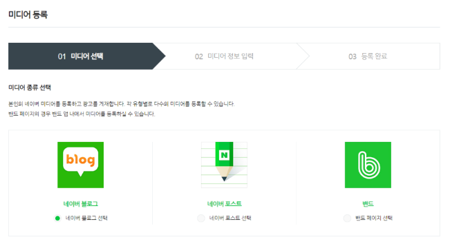 애드포스트에 회원가입을 한후 로그인이 되면 미디어를 등록할 수 있다.