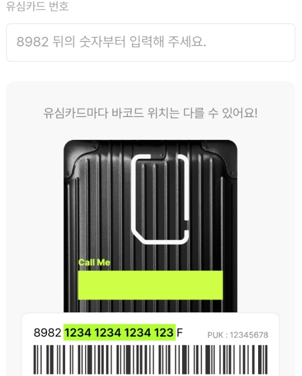 유심을 받은 후 유심 뒷편에 적힌 숫자를 입력해 번호확인을 하면 바로 개통 신청서를 작성할 수 있다.