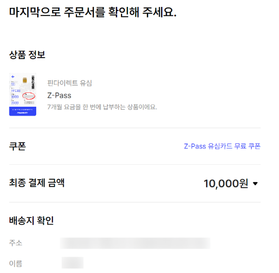 핀다이렉트 홈페이지에서 배송지와 인적 사항을 적고 결제를 진행했다.