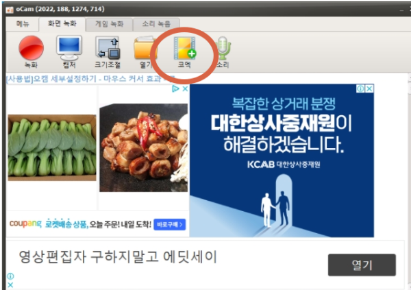 그 외에도 내가 원하는 만큼의 영역을 지정해 녹화를 할 수 도 있다.
