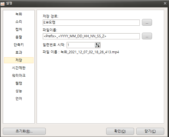 녹화를 할 때에는 저장공간 설정 및 파일 이름변경을 하고 진행을 하는 것이 현명하다.