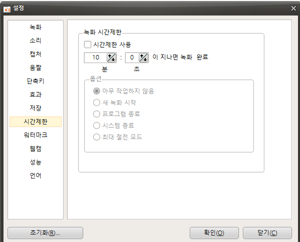 녹화시간제한 기능을 이용하면 일정시간만큼만 녹화를 진행하고 녹화를 완료할 수 있다.