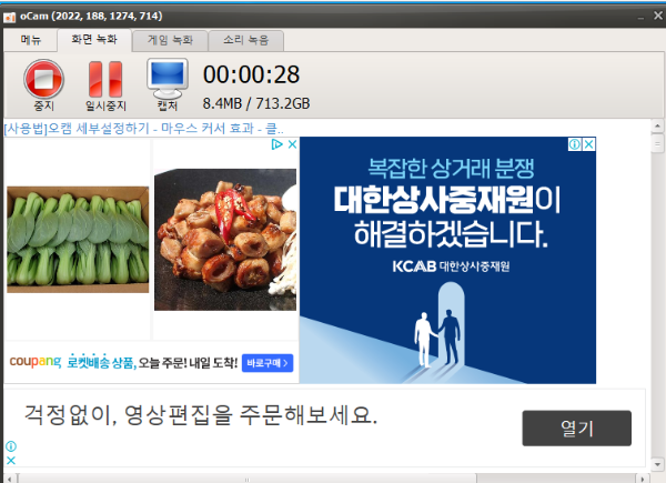 컴퓨터 화면을 녹화하는 프로그램은 많지만 내가 굳이 오캠을 이용하는 이유는 유료버전과 무료버전에서 큰 차이가 없다는 점 때문이다. 가볍게 쓰기에도 좋고 성능도 나쁘지 않아서 화면 녹화기능이 필요한 사용자들에겐 이만한 프로그램은 찾을 수 없을 것 같다.