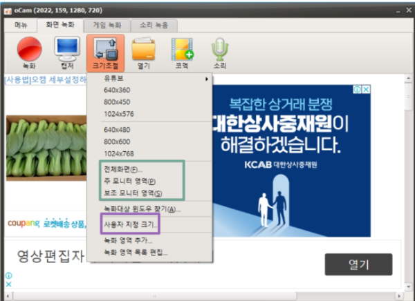 그 외에도 내가 원하는 만큼의 영역을 지정해 녹화를 할 수 도 있다.
