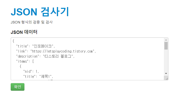 만들어진 json 데이터는 잘못된 구조가 아닌지, 들어가서는 안될 데이터는 없는지 검증이 필요하다.