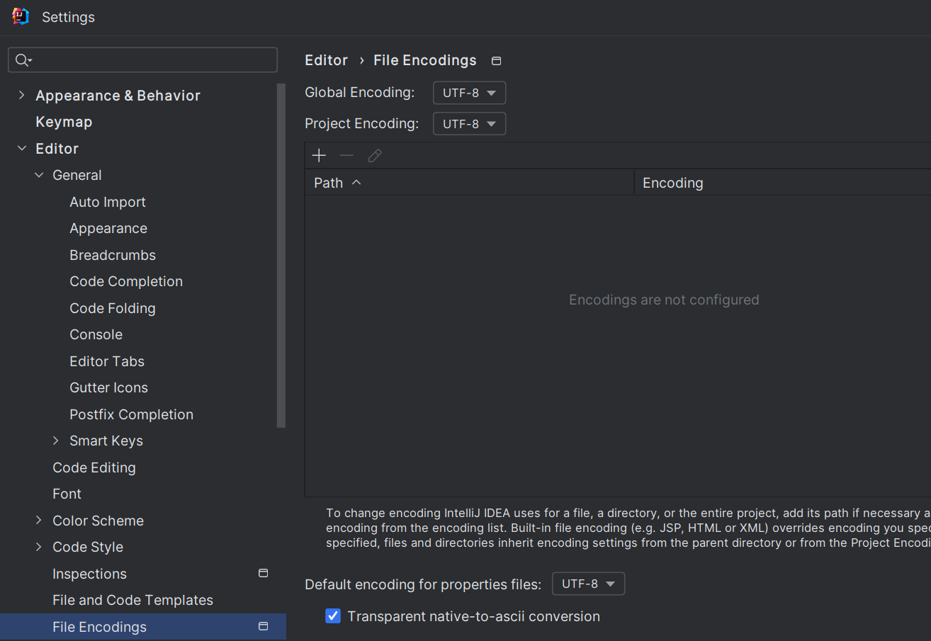 Global Encoding과 Project Encoding, 그리고 Default encoding for properties files를 확인하고 UTF-8로 바꾸어준다.