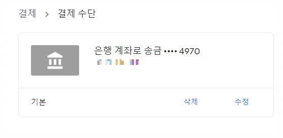 기입한 결제 정보가 올바르다면 내 은행계좌가 결제 수단으로 등록이 완료된다.