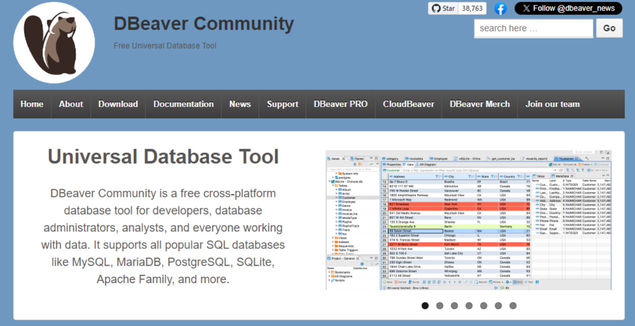 Download DBeaver Community 24.1.4 Released on August 4th 2024 (Milestones). It is free and open source (license). Also you can get it from the GitHub mirror. System requirements. DBeaver PRO 24.1 Released on June 12th, 2024 PRO version website: dbeaver.com