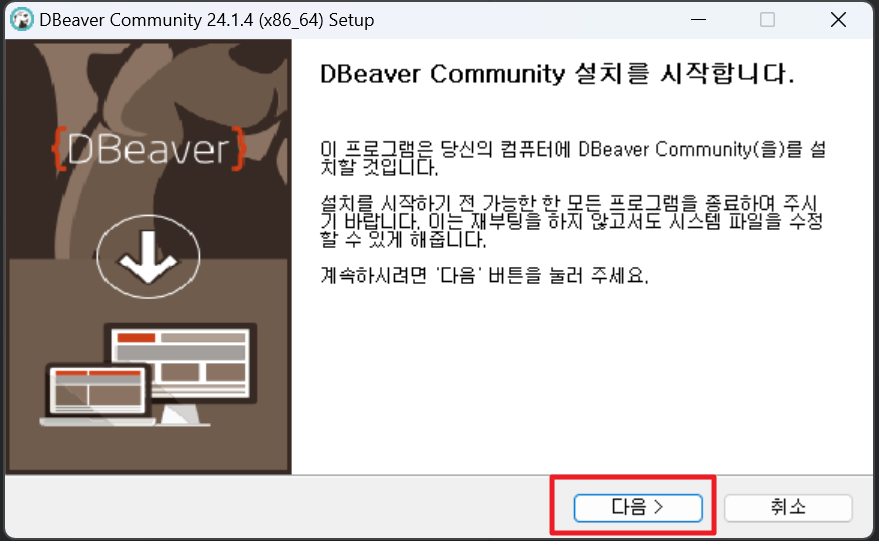 DBeaver 사이트에 접속해 Community 버전을 다운로드한다.