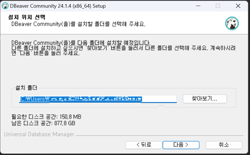 설치하고자 하는 DBeaver Community의 구성요소를 선택한다. '다음'