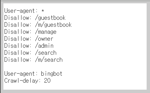 모든 검색엔진의 로봇 수집을 허용하지만 특정 로봇 엔진의 수집을 비허용