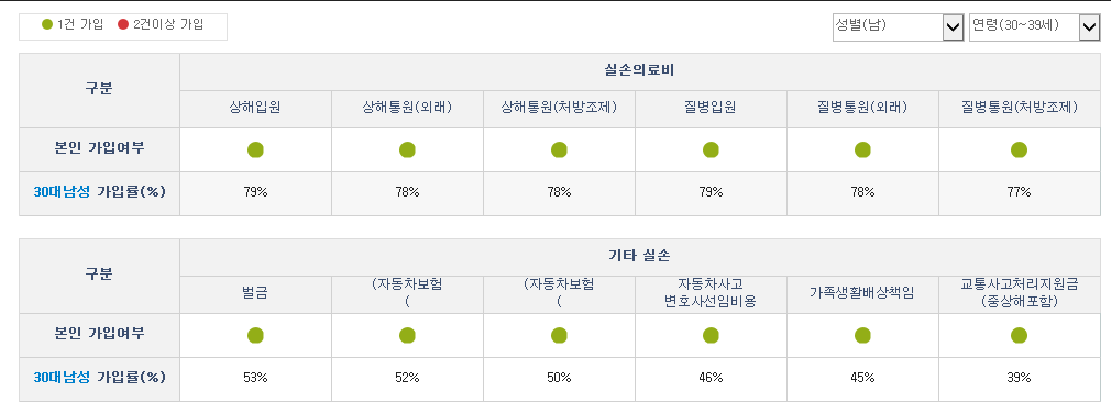 보험정보를 확인해보면 내가 가지고 있는 정액형 보험과 실손형 보험의 가입여부를 알 수 있다.