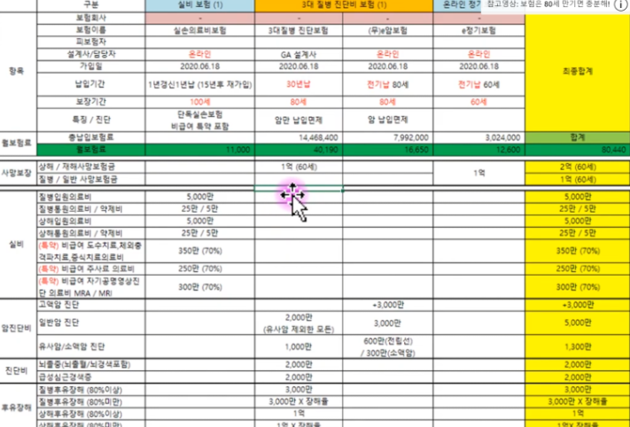 몇개의 보험 유튜브 채널을 보고 보험계획을 세웠다.